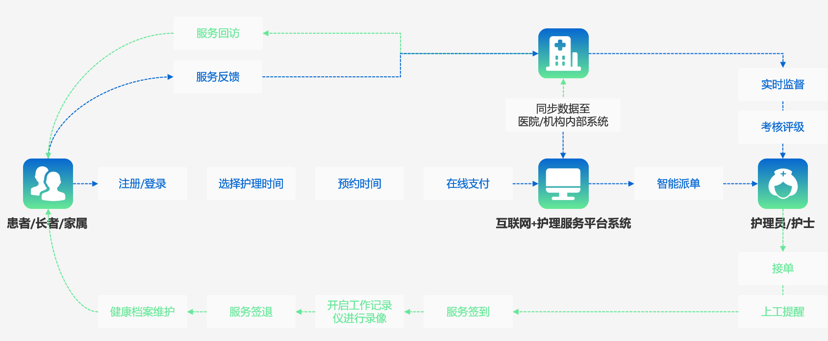 通过贯通“患者线上服务订阅”+“护理上门服务”,拓展护理市场,打造“互联网+护理”护理服务闭环。