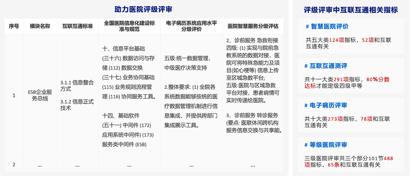 助力医院评级评审帮助医院完成国家政策要求的相关评级评审,包括智慧医院评级、等级医院评审等。 |